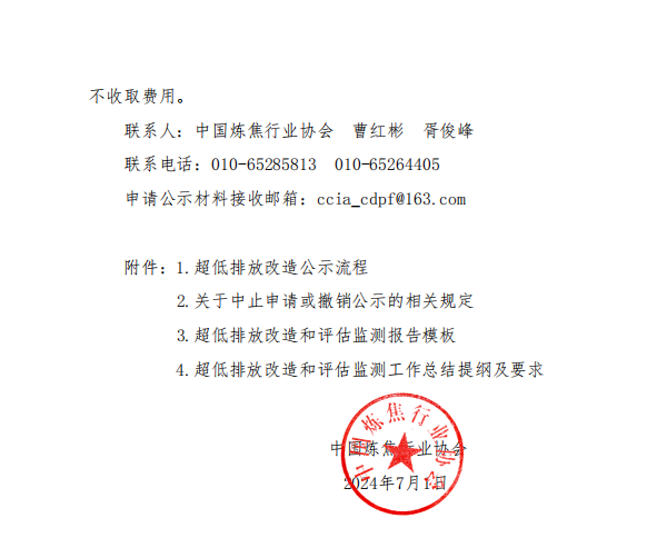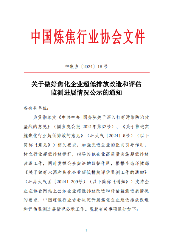 中國煉焦行業協會發布《關于做好焦化企業超低排放改造和評估監測進展情況公示的通知》