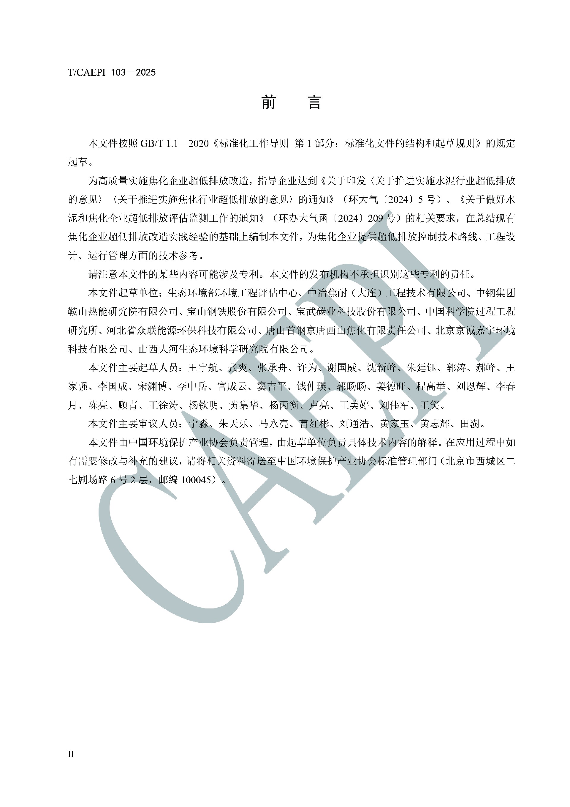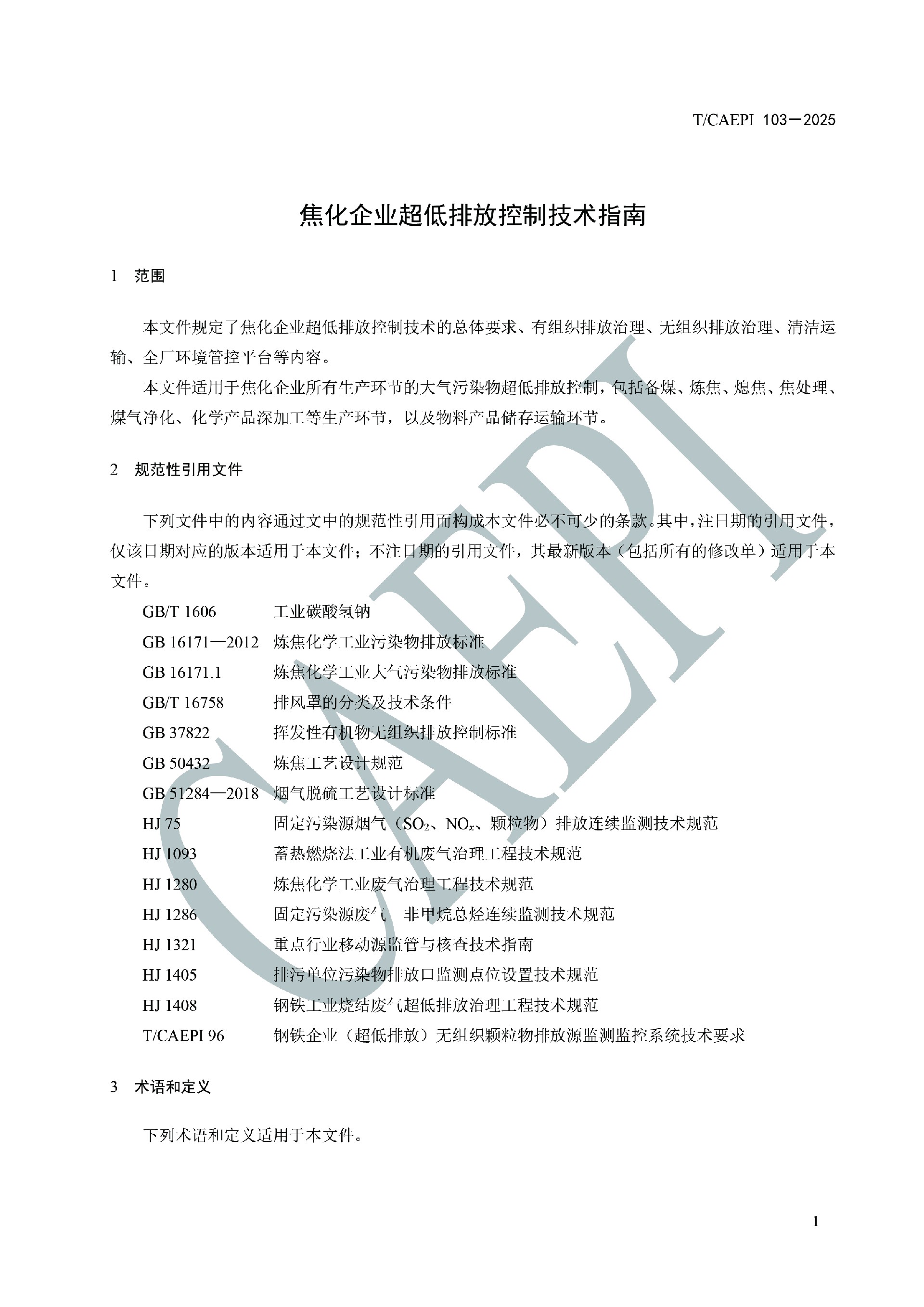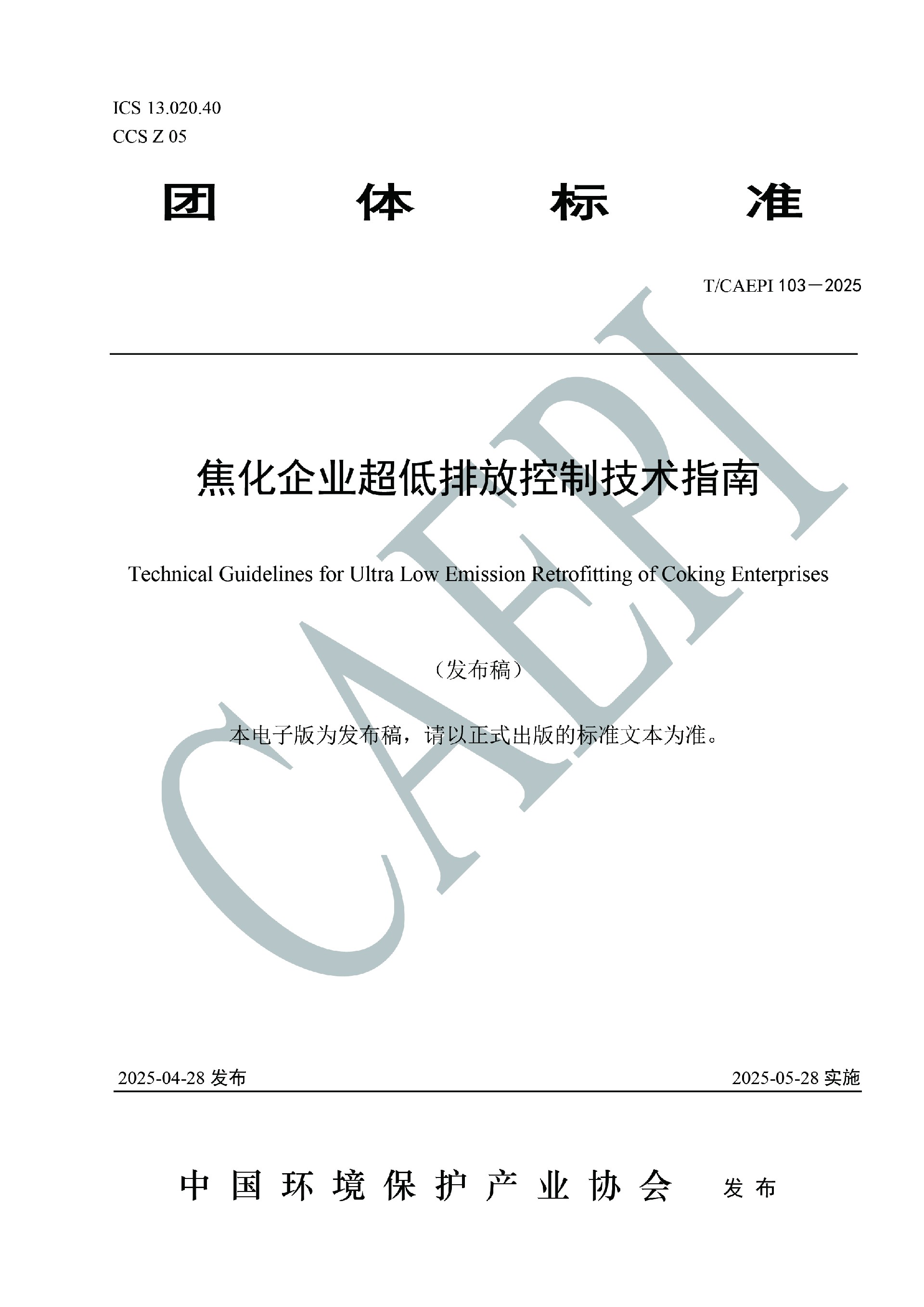 首頁 - 資訊中心 - 行業動態 — 《焦化企業超低排放控制技術指南》(T/CAEPI 103-2025)團標發布